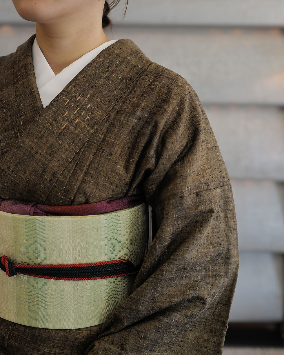草木染 真綿紬 手織り 横段 [仕付け糸付き未使用品] 身丈165 裄65